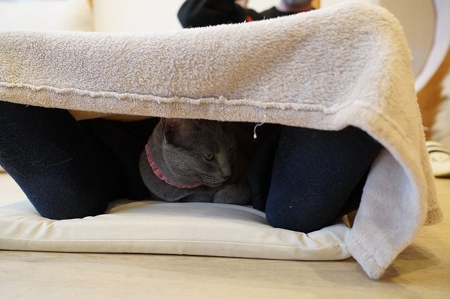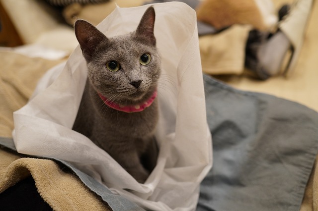袋入りおひざ乗り中。