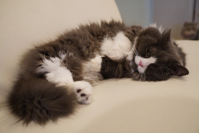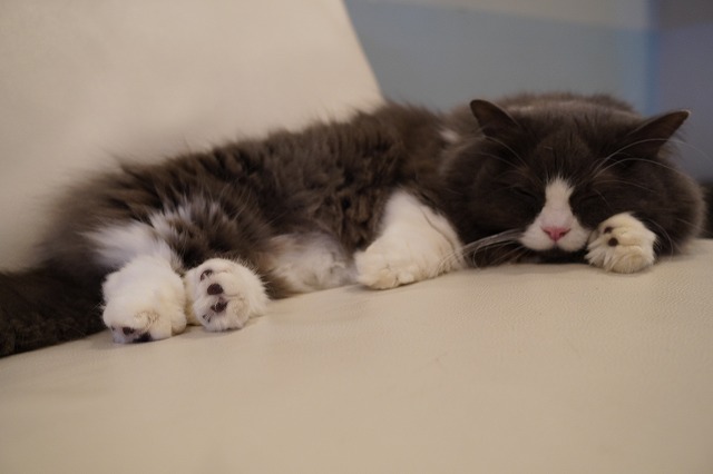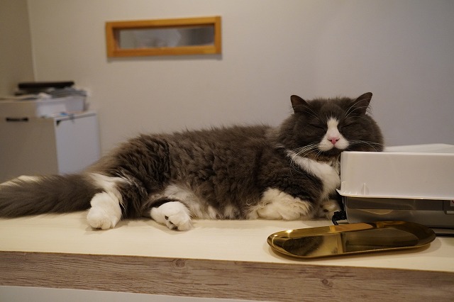 定番の受付にもいますが、最近はソファーに居ることも多くなったラムネくん。