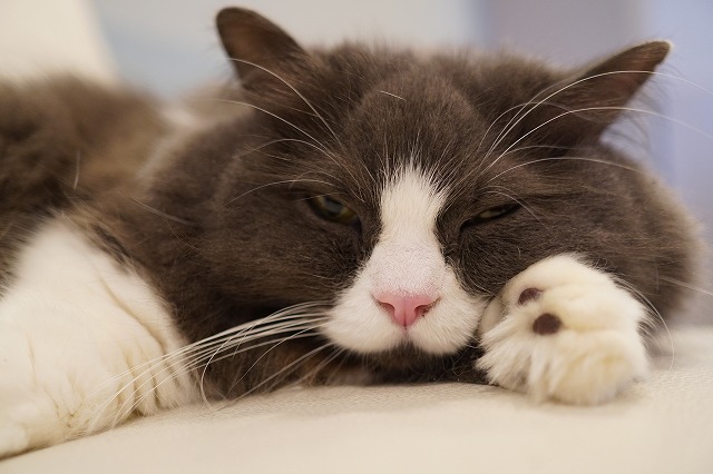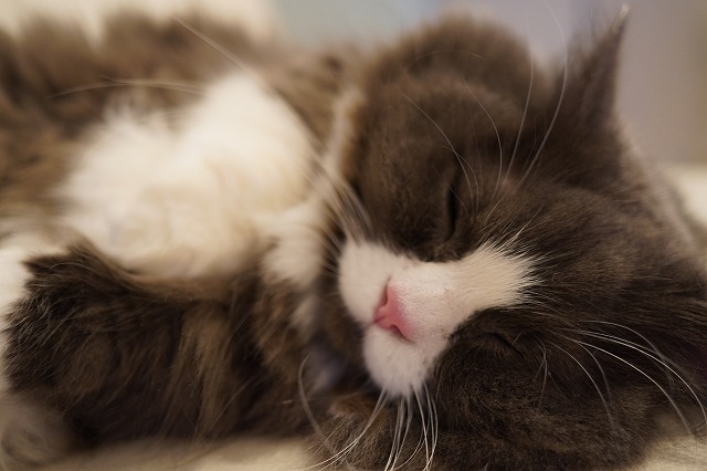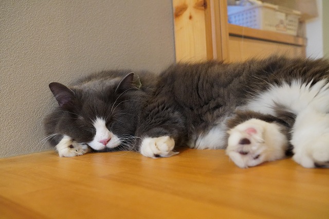 短い手枕で気持ちよく寝るラムネくんでした。