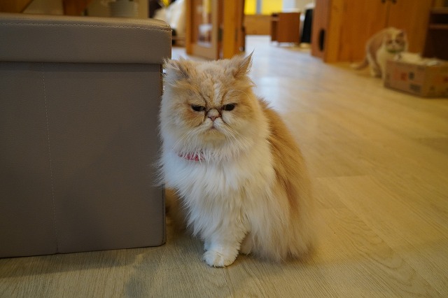 もなかちゃんが後ろのスツールBOXのふたの角をガリガリして破れがひどくなったので新しいふたに変えました。