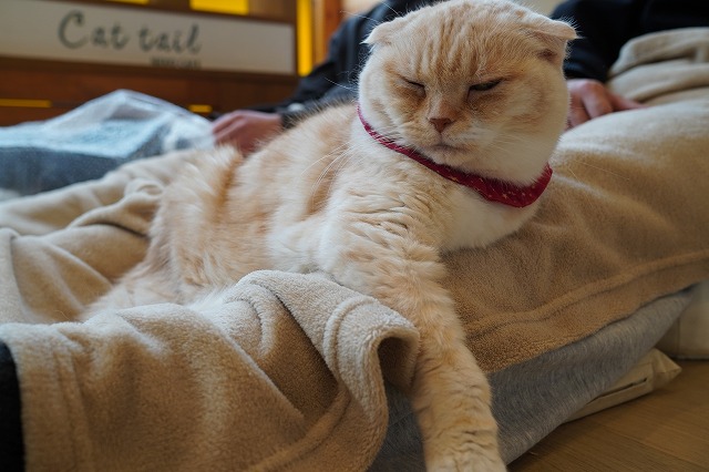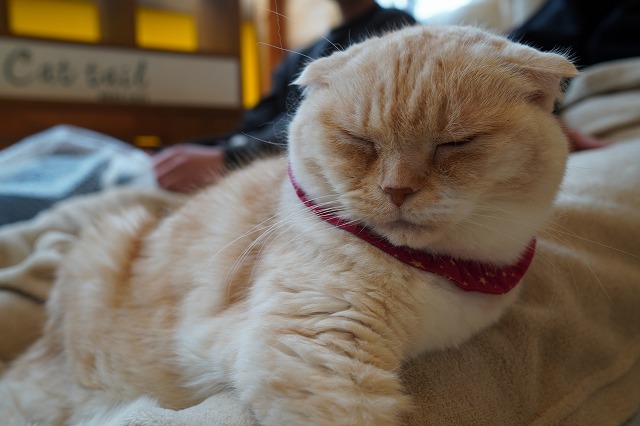 気持ちよくお客様のおひざで寝ている最年長のくるみちゃんでした。