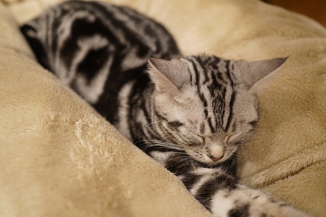 たくさん遊んだ後はおひざ乗りして寝ます。