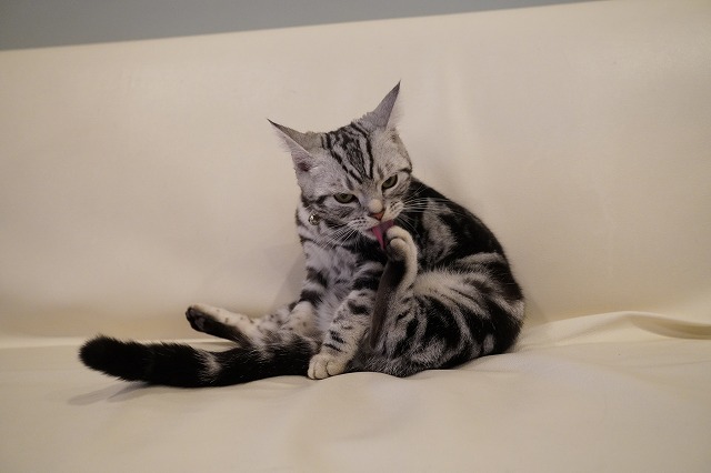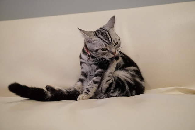 入念に足裏を舐めています。