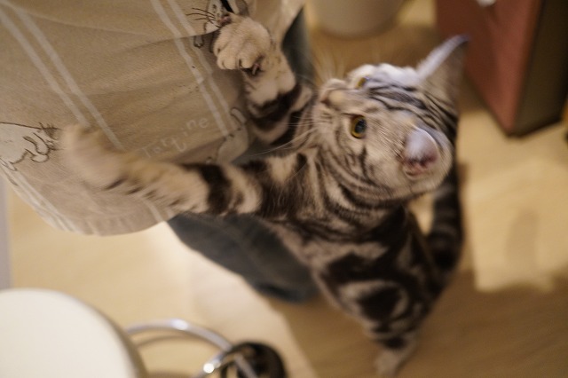 ひもを狙うあずきちゃん。