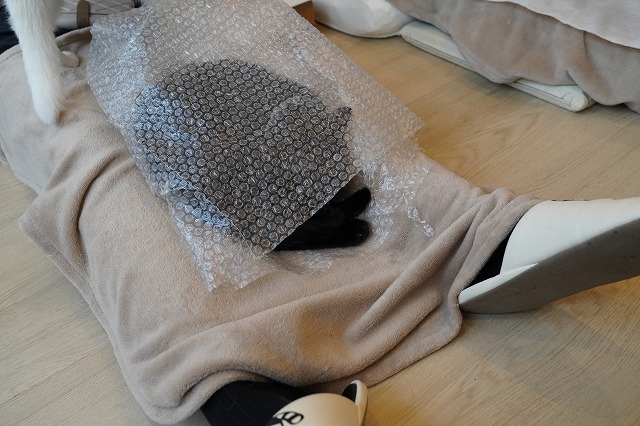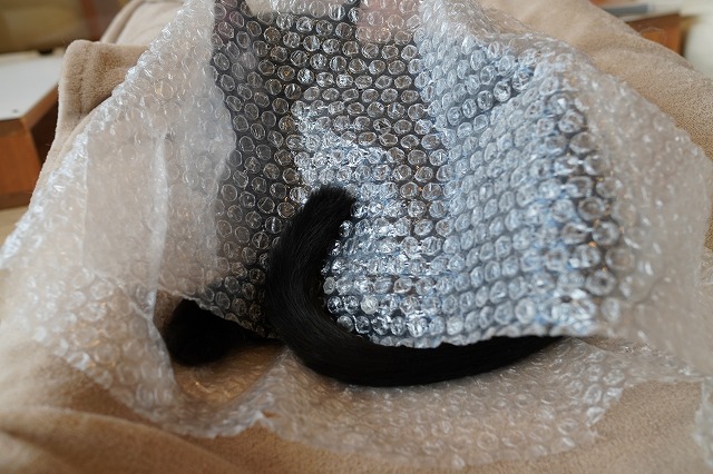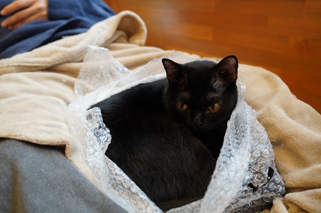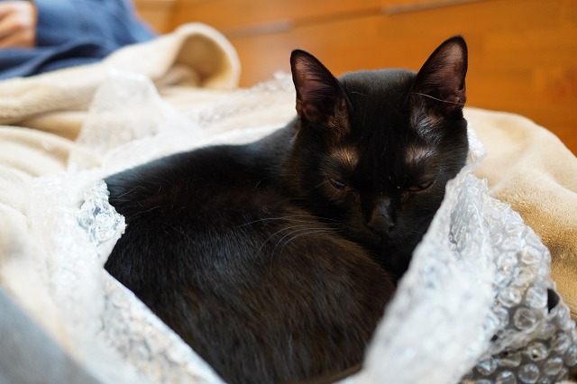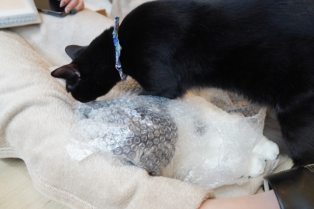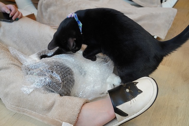 その後、ぷちぷち袋入りひざ乗りしたうにくん。