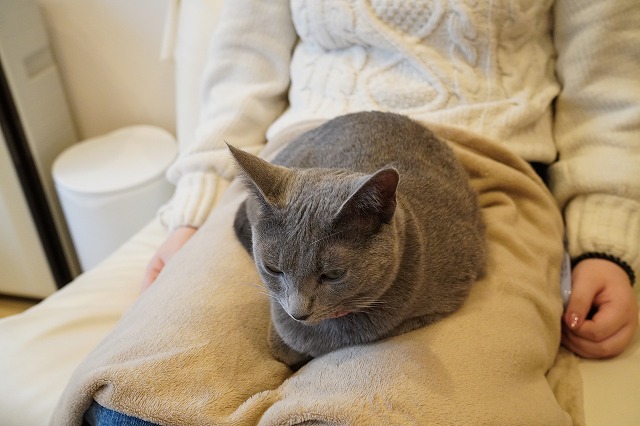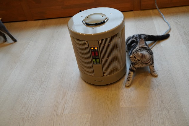 その後、好きなストーブに乗っているとお客様が猫じゃらしで気を引きます。