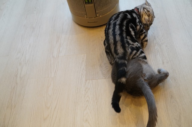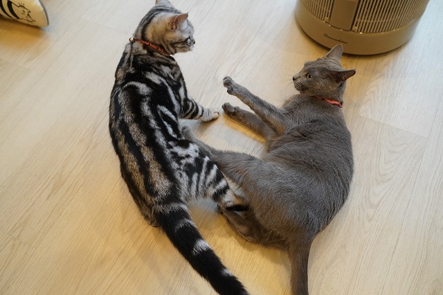その後、休んでいると遊んでほしいあずきちゃんの標的になったローズちゃん。