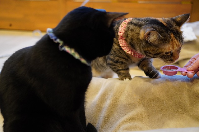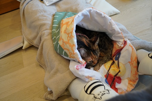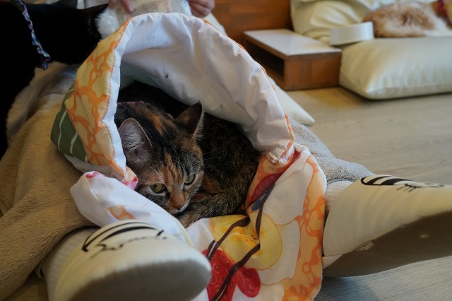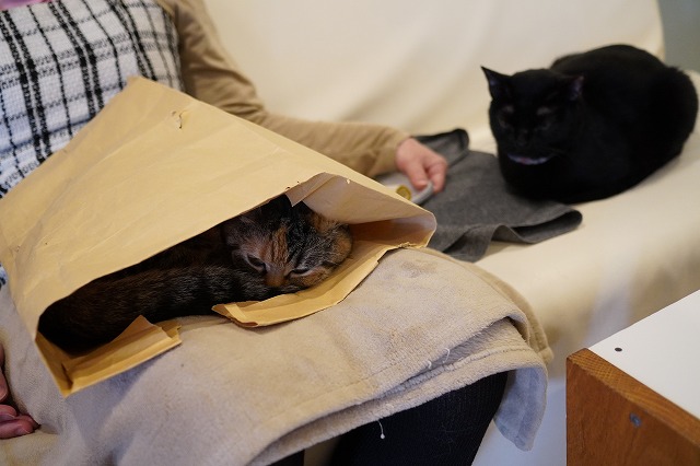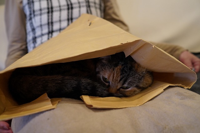 猫の日もクレープ隠れおひざ乗りをしていたあられちゃん。