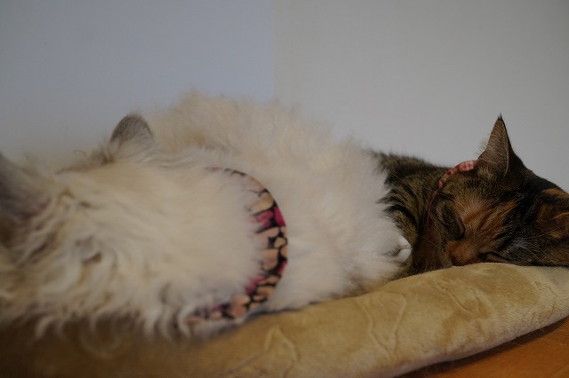 その後、しずくちゃんと仲良く棚上で寝るあられちゃん。