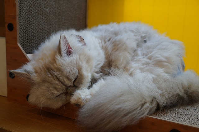爪研ぎコーナーで寝てます。