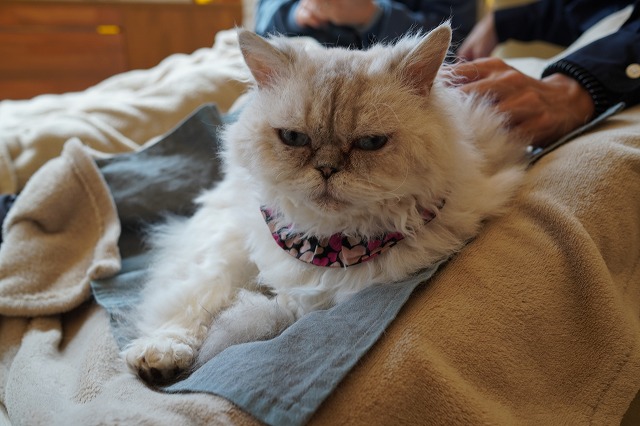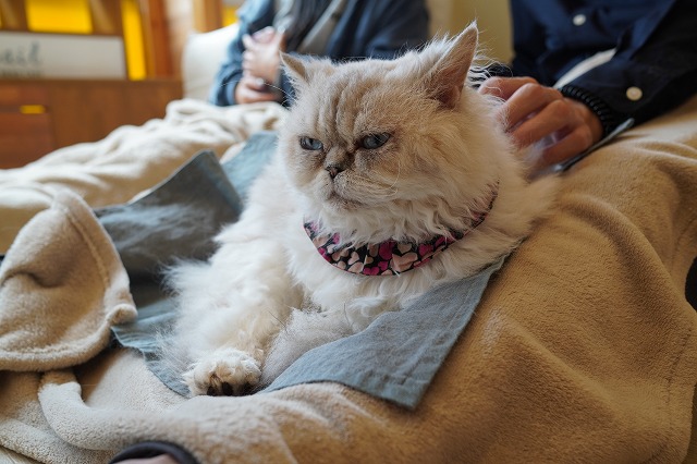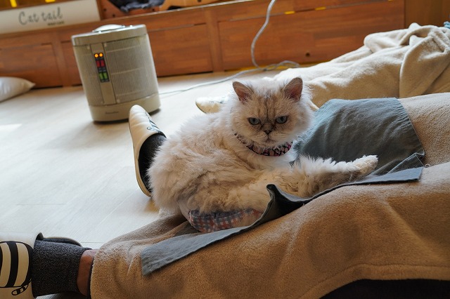 お客様のおひざへ自ら乗りに行きます。