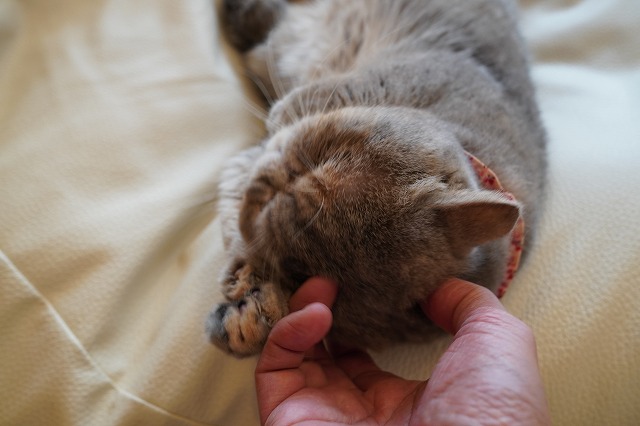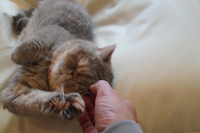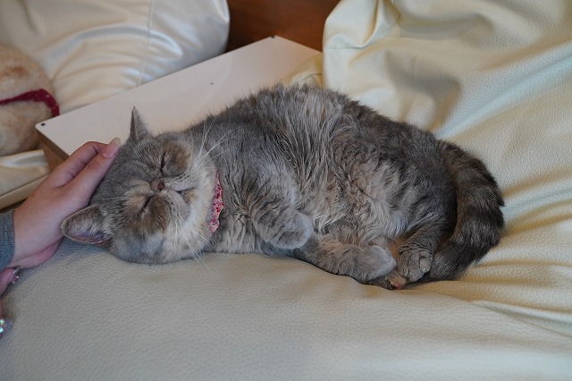 いつもの場所でごろんと寝転びお客様になでなでしてもらうつくしちゃんでした。