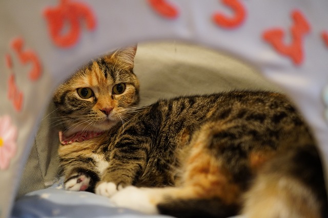 反対側からカメラで撮らせて頂くと、あられちゃんが起きていました。