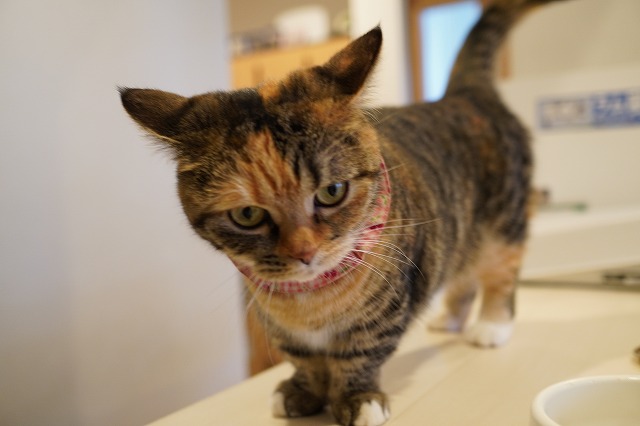 受付に上ったあられちゃん。