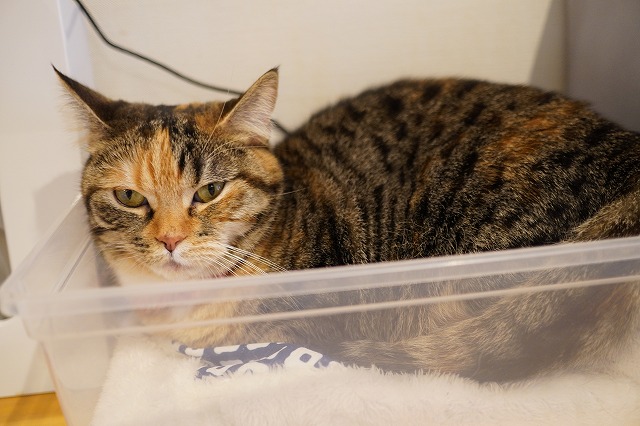 箱猫あられちゃん。