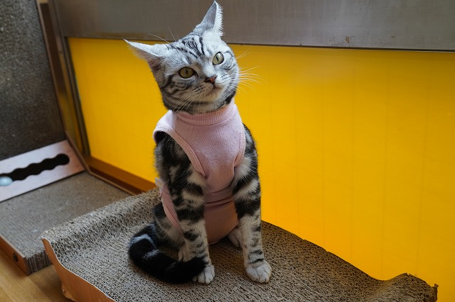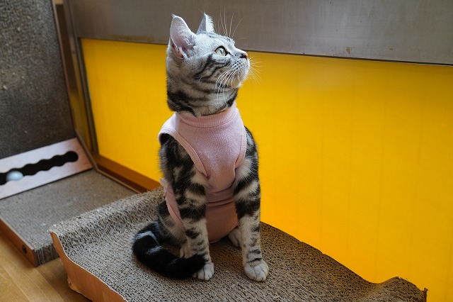 初日は術後服を嫌がっていましたが、2日目以降は慣れたようです。