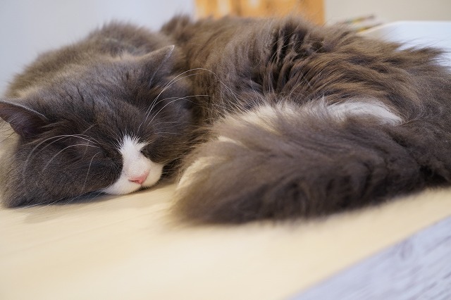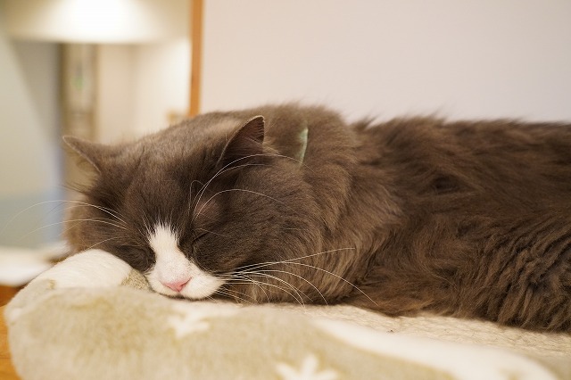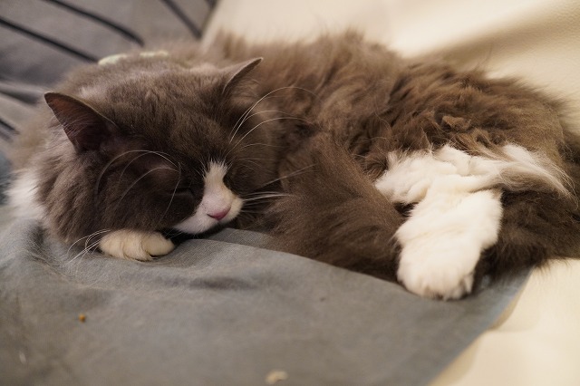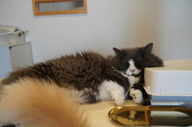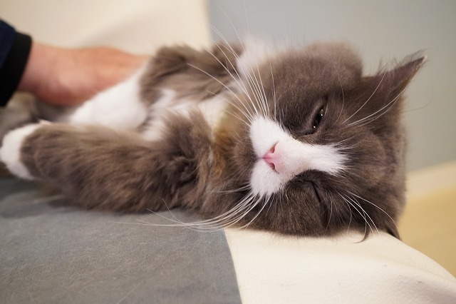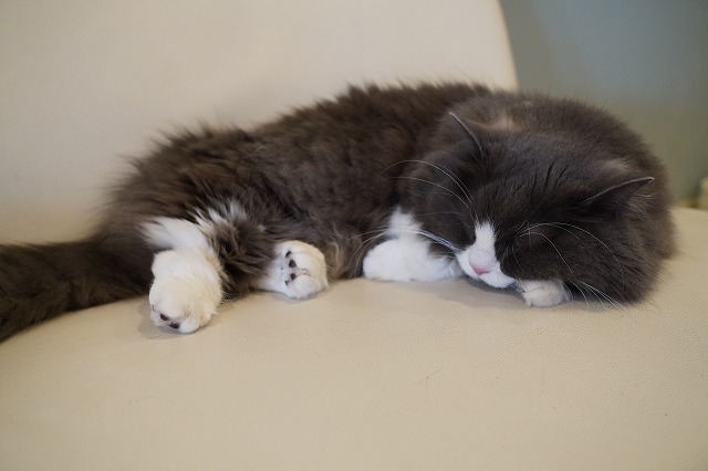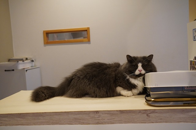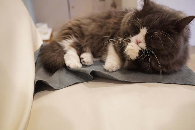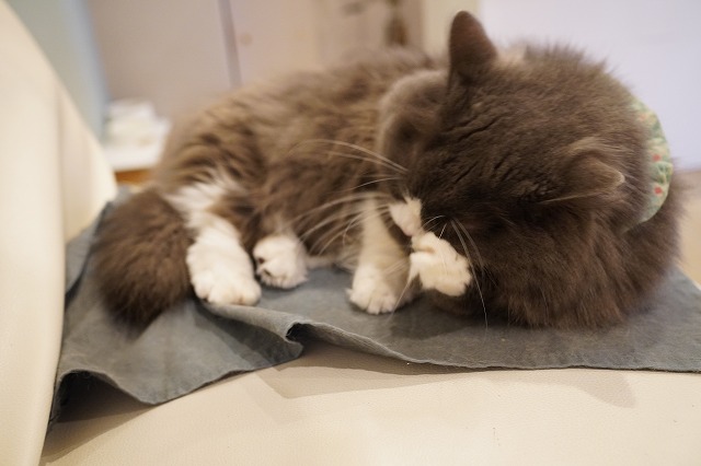 最近受付だけでなくソファーで過ごすことも多いラムネくん。