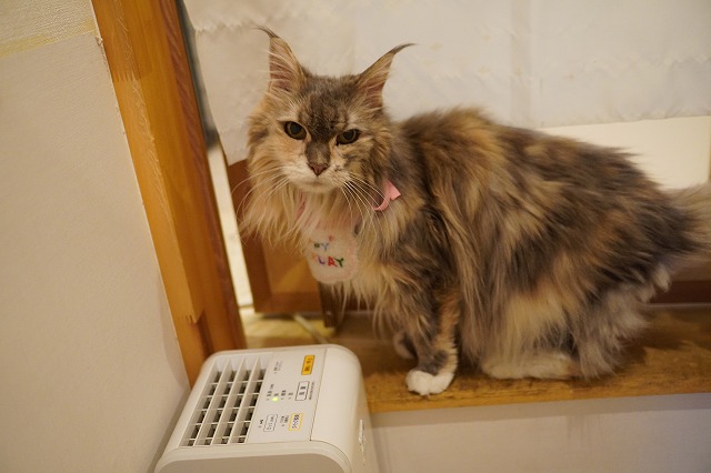 お誕生日なので出場してほしいのでこの日はお客様のおひざの上でウェットごはんを食べてもらいました。