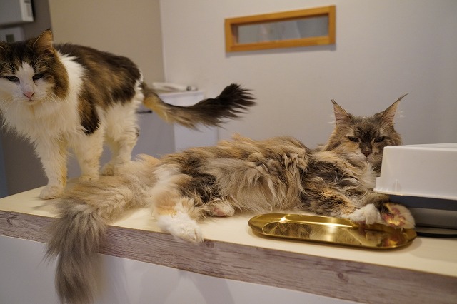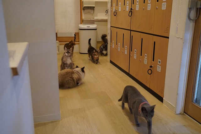 この日はスタッフが出勤してきたので奥のスタッフ休憩室に何匹か集合したカフェニャンズ。