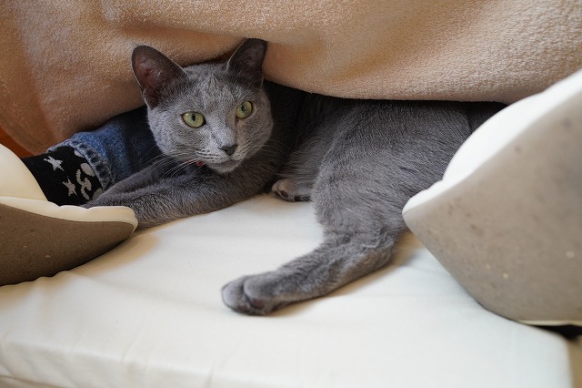 お客様の太もも辺りから少し顔をのぞかせていました。