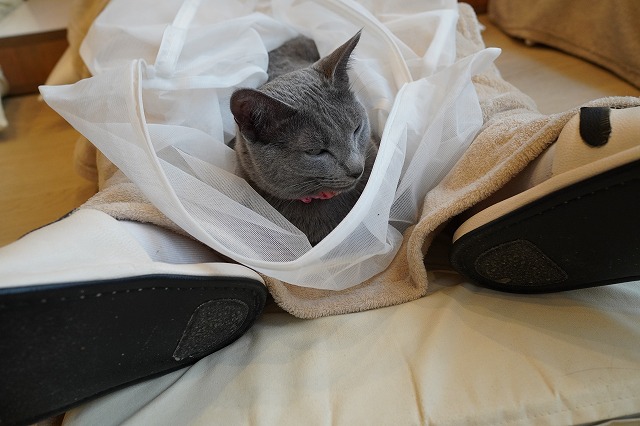 スリッパを履いてトンネルの入り口を作ってもらうと入りたい時にスルスルと入るローズちゃん。