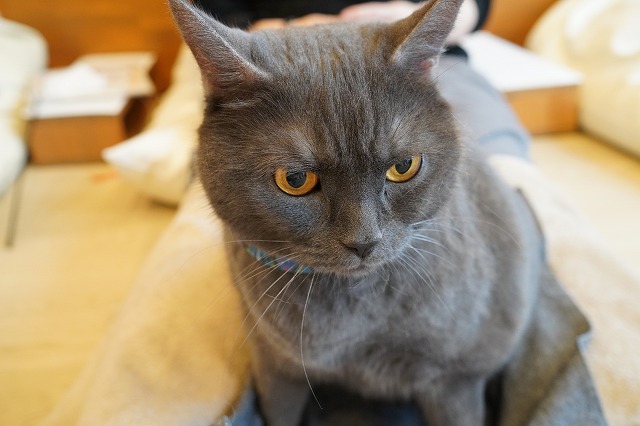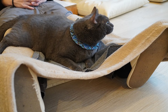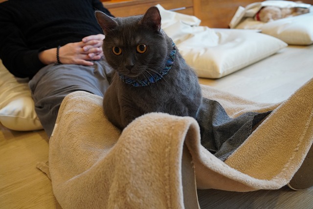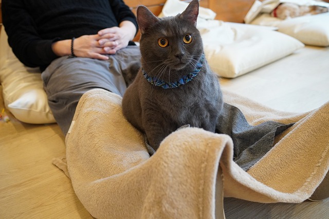 この向きで乗るのが通常のトリュフくんのおひざ乗りの仕方です。