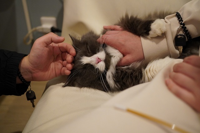 そのまま寝ているとお客様からマッサージを受けていたラムネくん。