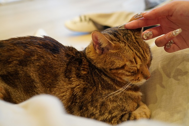 昨日もおひざ乗りしてお客様にそっとひたいをマッサージしてもらっていました。