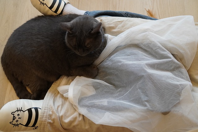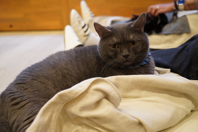 隣でおひざ乗りをしていたあずきちゃんが興味津々に見ていました。