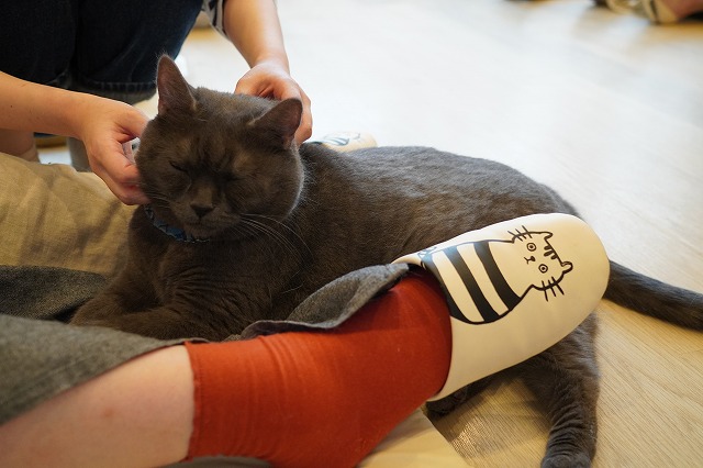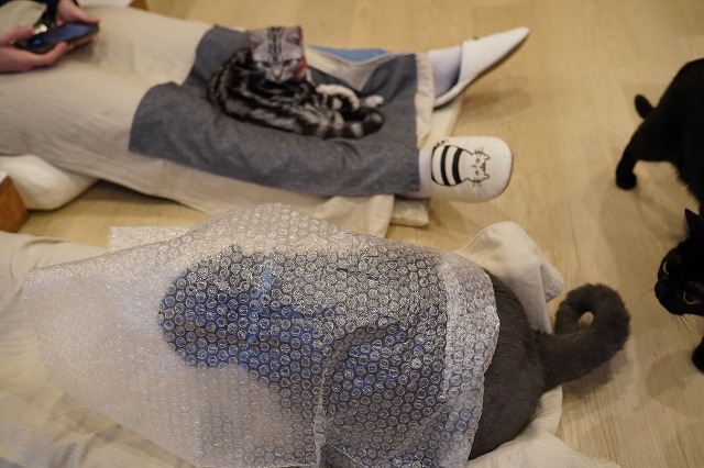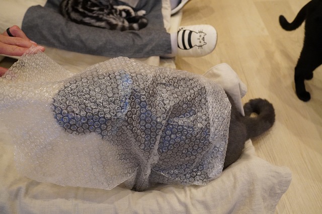その後は、ぷちぷち袋入りのおひざ乗りを実施。