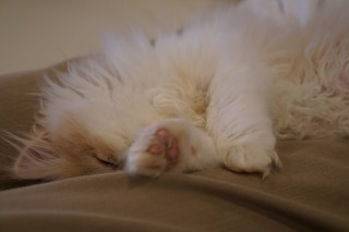 レオ様が寝ているソファーに上ってきたもなかちゃん。