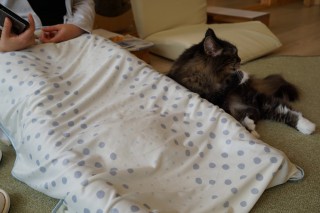 一昨日も朝一からお客様の足間に潜るもなかちゃん。