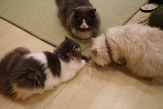 お客様に撫でてもらって気持ちよさそうなラムネくん