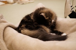 両足間添い添い、すなわち足間乗りも増えてきたシロンちゃん
